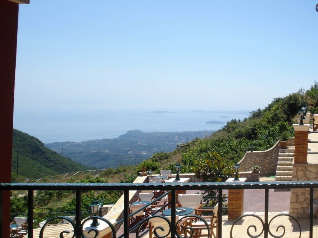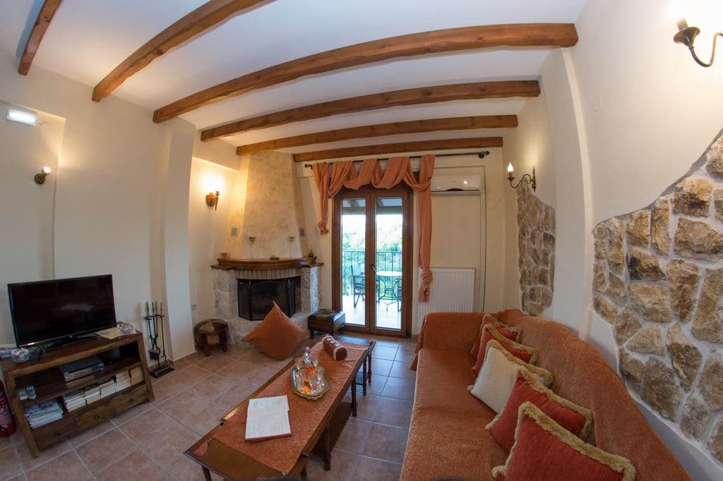 Διαθέτει 3 βεράντες εξοπλισμένες με τραπεζάκια και πολυθρόνες εξωτερικού χώρου και πανοραμική θεα προς τη θάλασσα, το βουνό, το χωριό αλλά και το χώρο της πισίνας.