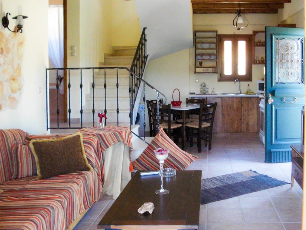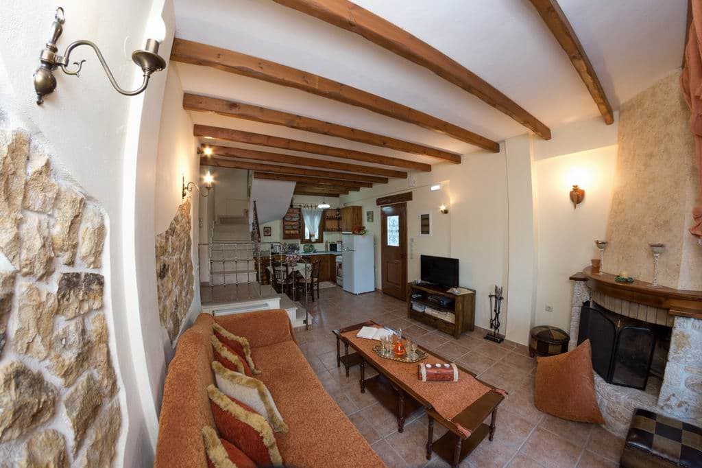 Το 1ο επίπεδο αποτελείται από έναν ενιαίο χώρο με πλήρως εξοπλισμένη κουζίνα με τραπεζαρία και καθιστικό με τζάκι.